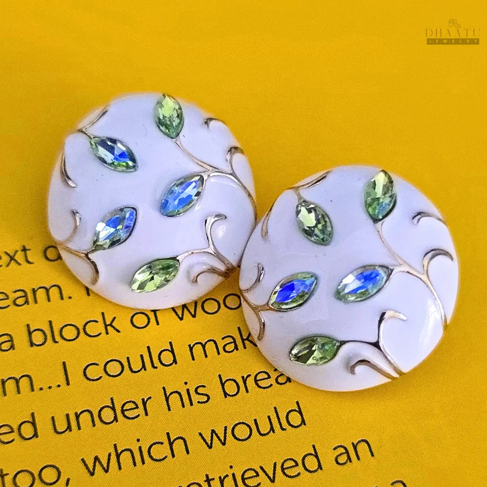 Lumina Enamel-Edged Crystal Floral Stud Earrings | Gold-Plated Statement Jewelry