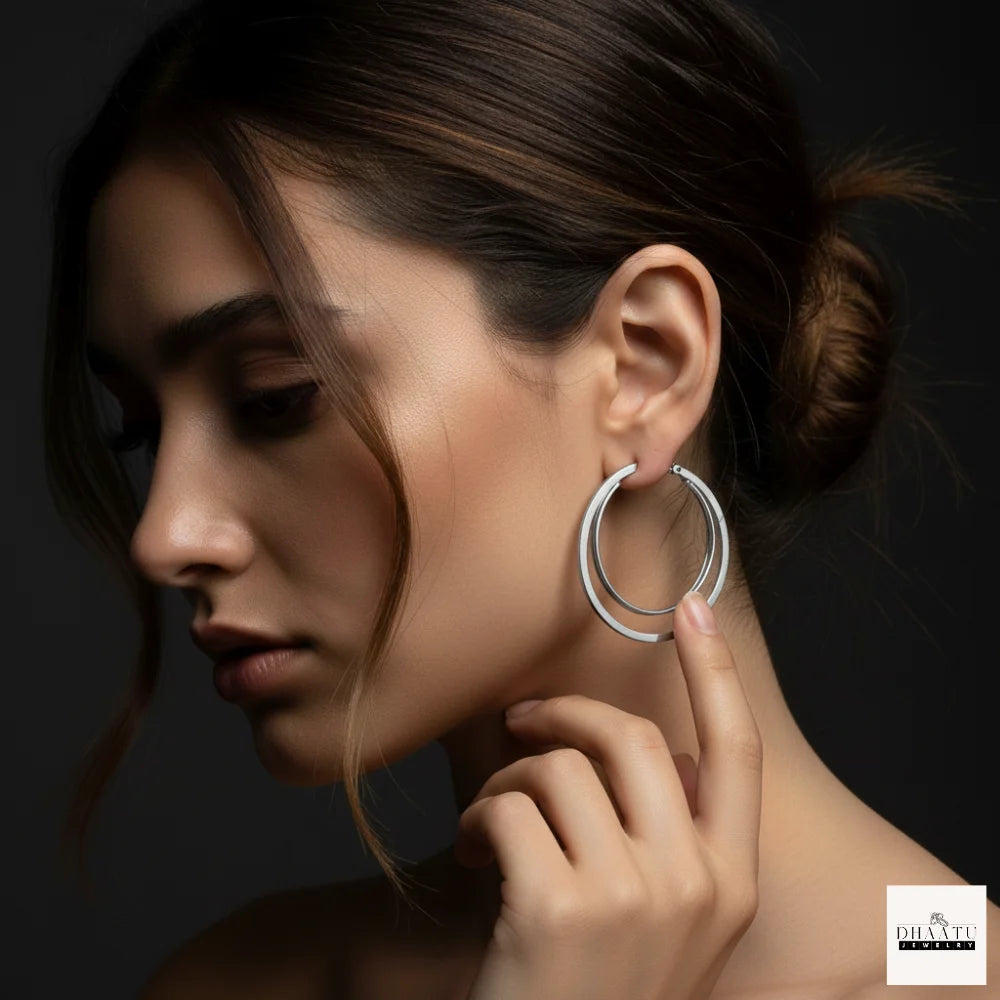 Chic Double Layer Hoop Earrings - Anti-Tarnish, Hypoallergenic (Gold/Silver, 3 Sizes: 5cm, 4cm, 3cm)