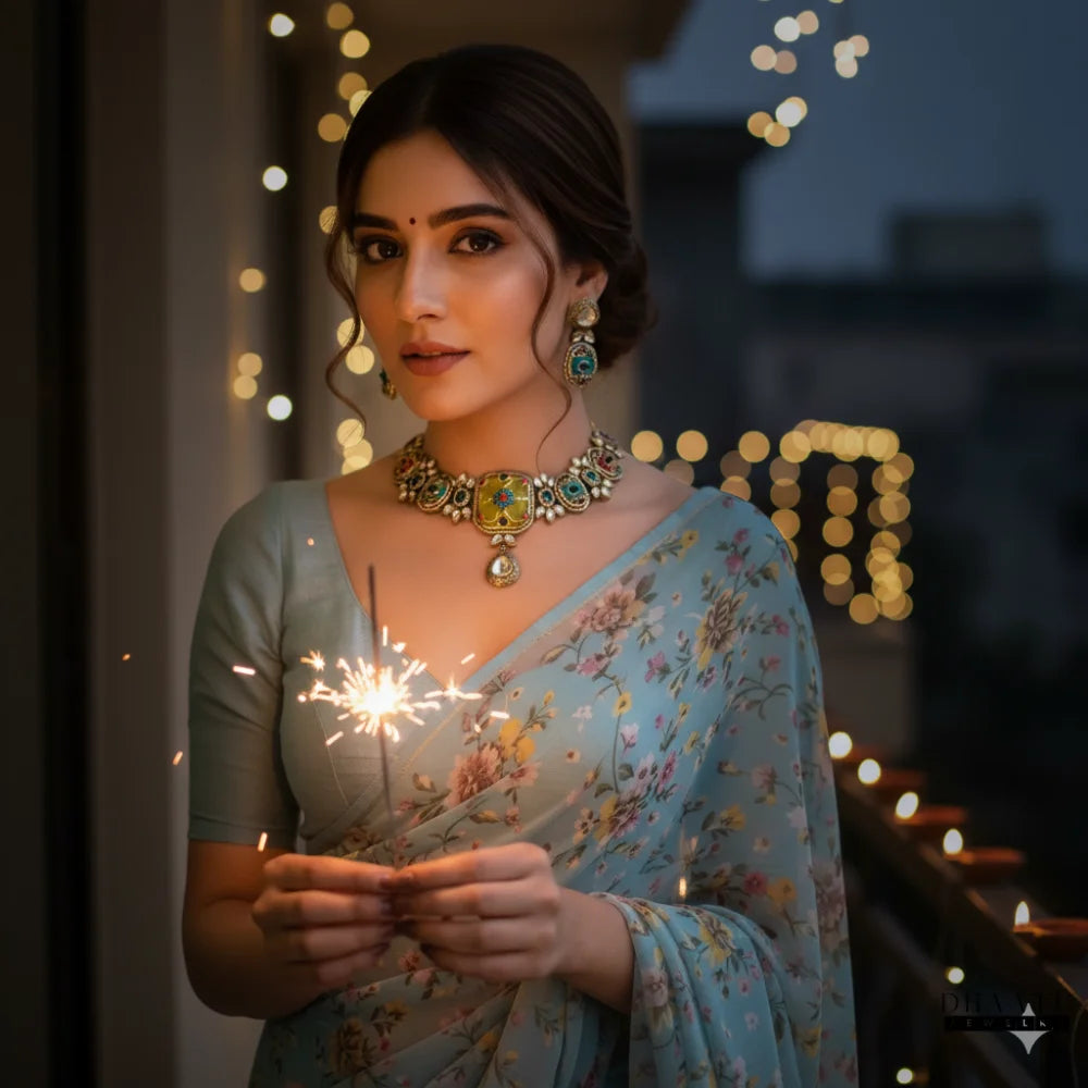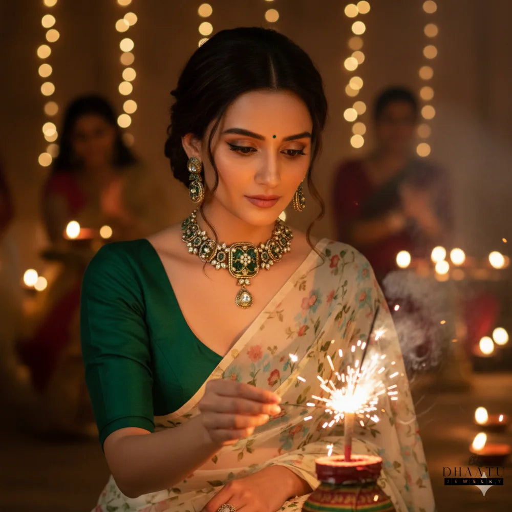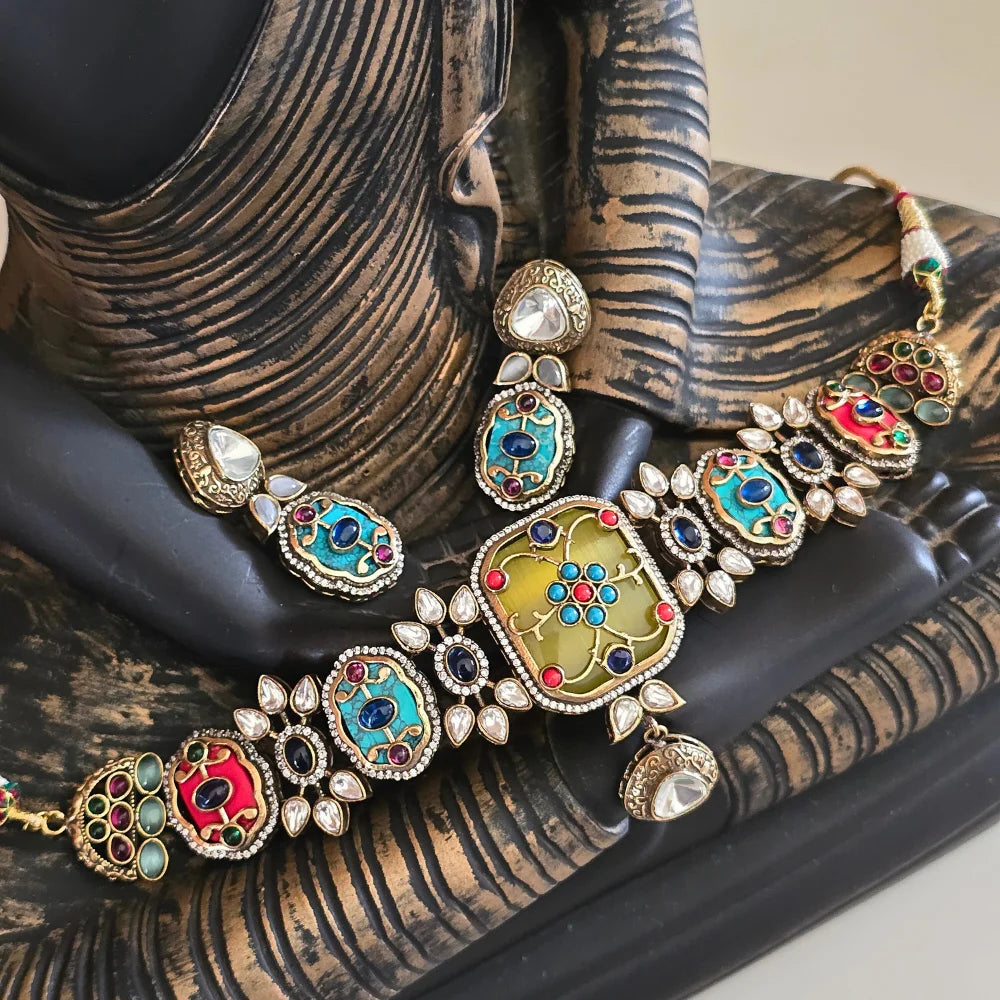 Experience the regal splendor of traditional Indian craftsmanship with our Exquisite Polki Style Choker Set. This absolute showstopper, available in 6 variants, is designed to capture the elegance of heritage jewelry.